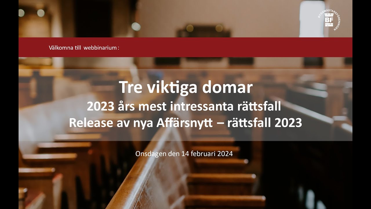 För att förstå innebörden av de lagar och avtalsvillkor som reglerar förhållandet mellan olika parter i byggbranschen är domar av stor betydelse. Under det här webbinariet sammanfattar vi de mest intressanta och betydelsefulla rättsfallen som påverkat byggbranschen under 2024. Rättsfallen berör byggbranschens affärsavtal och behandlar entreprenadrätt och offentlig upphandling.
